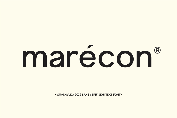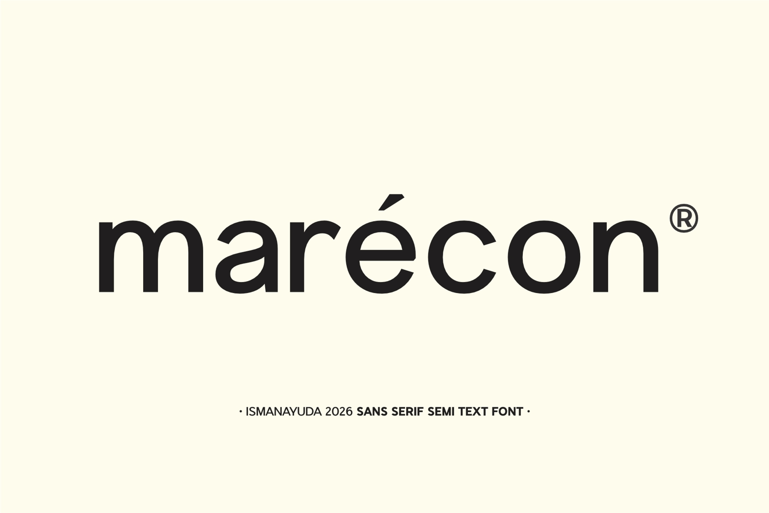Marecon Sans Serif font semi text typeface characterized by its modern, clean, and minimalist aesthetic. It features geometric structures with uniform stroke thickness, providing high readability and a professional appearance. The lowercase letters have open counters and precise curves, which lend the typeface a contemporary and approachable feel. Its overall design is balanced and versatile, making it highly suitable for branding, digital interfaces, and editorial design.