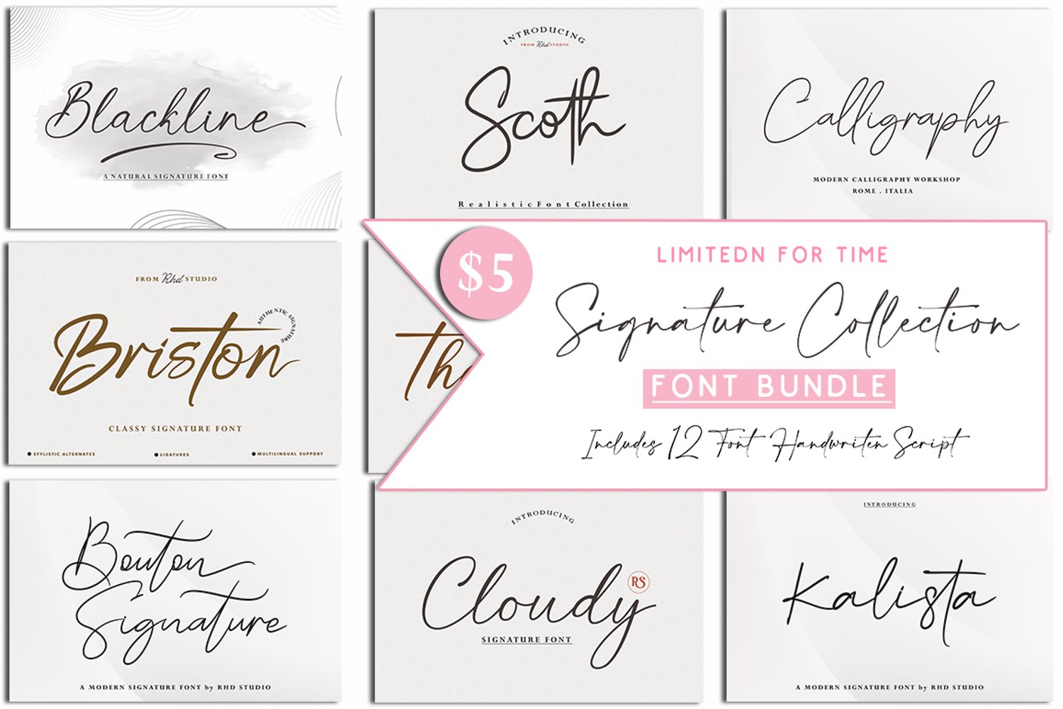 Get this ultimate bundle with 50 handwritten fonts for only $ 10. with a value of more than $ 120.