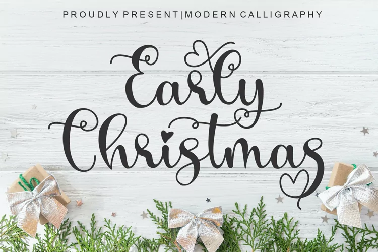 Early Christmas is a Script Style font by Letterafa Studio. It has flowing letters that will give your designs a unique and sweet look. Early Christmas font is perfect; logos, greeting cards, a package design, a brand identity, craft design, any DIY project, book title, wedding invitation, packaging, and more.