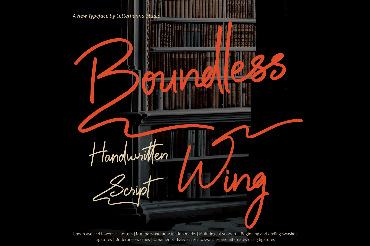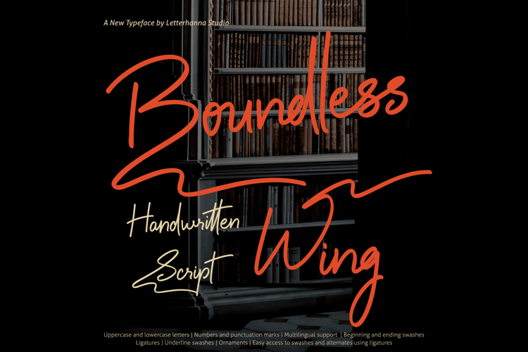 In a world of typed perfection, true emotion hides in the imperfect stroke of a pen. Boundless Wing captures that raw, bold energy. Crafted by Letterhanna Studio, this handwritten script font features abundant ligatures for seamless connections, beginning/ending swashes that frame your text dramatically, and a library of stylistic alternates plus ornaments for endless customization. It’s designed to feel handwritten yet remain strikingly readable—ideal for bold headlines, social media graphics, or editorial designs. Break free from ordinary typography. Discover Boundless Wing now