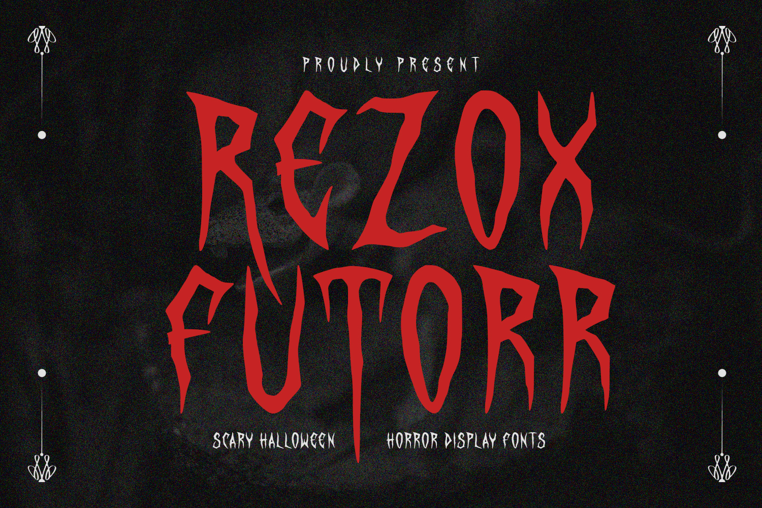 Unleash the spirit of the season with Rezox Futorr, the ultimate scary Halloween and horror display font from Maulana Creative. This typeface is a chilling blend of jagged edges and haunting curves, meticulously designed to evoke fear and suspense. Perfect for a wide range of projects, Rezox Futorr brings a terrifyingly unique touch to your horror movie posters, spooky party invitations, video game titles, book covers, and any design that demands a bone-chilling presence. Its bold, impactful style ensures your message screams with a macabre flair, making it an essential tool for any designer looking to create a truly unforgettable and eerie atmosphere.