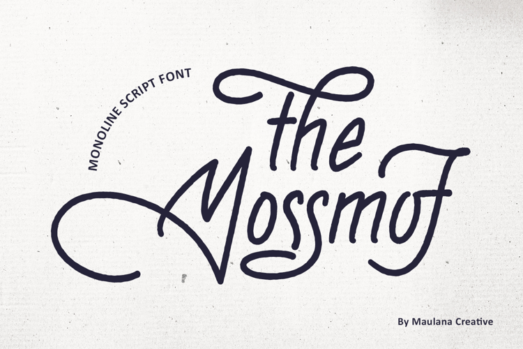 The Mossmof is a beautifully flowing and charming Monoline Script Font that brings an authentic, handcrafted feel to any design. Created by Maulana Creative, this font strikes the perfect balance between classic elegance and contemporary style with its consistent, clean line weight and gracefully connected characters. The smooth, continuous script mimics natural handwriting, perfect for adding a sophisticated touch.
