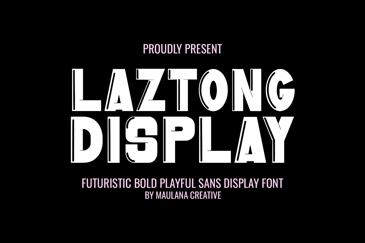 Laztong Display is a bold, futuristic, and playfully designed sans serif font that demands attention. Crafted to embody the essence of the future, technology, and energetic club culture, Laztong features a unique split-line effect within its characters, giving it a distinctive, dynamic, and glitchy aesthetic.