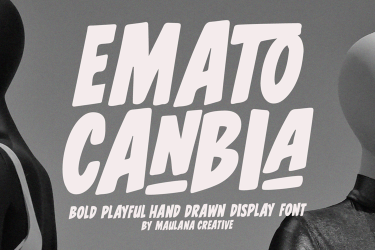 Elevate your creative projects with Emato Canbia, a bold and expressive hand-drawn display font designed to bring character and energy to every layout. Created by Maulana Creative, this font features thick, organic strokes and a slightly slanted, quirky rhythm that instantly grabs attention.