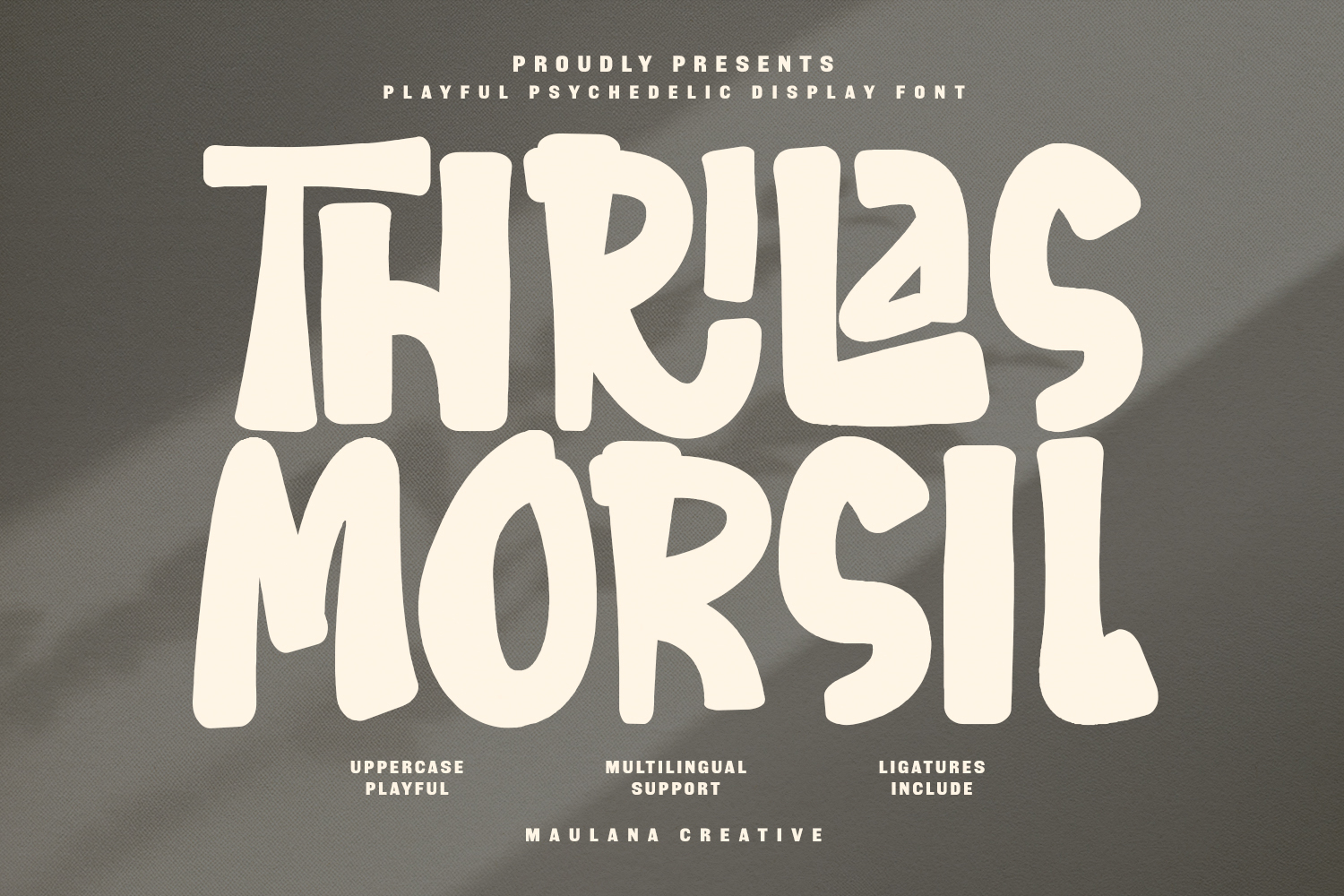 Whether you are designing eye-catching posters, trendy apparel, vibrant social media graphics, or bold brand identities, Thrilas Morsil adds an instant touch of joyful nostalgia. It comes packed with multilingual support and special ligatures to ensure your designs look hand-crafted and authentic.