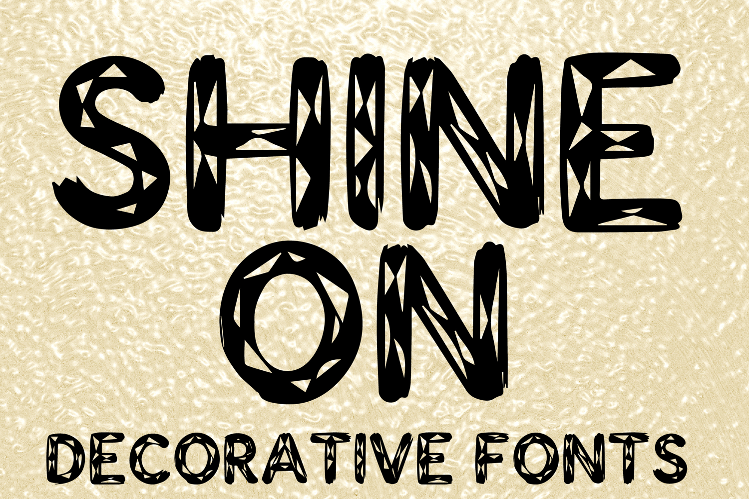 SHINE ON is a bold decorative display font with a handcrafted geometric style and striking artistic character. Its uppercase letterforms feature thick strokes, sharp cutout details, and textured angular patterns that create a unique, edgy, and eye-catching look. Designed with uppercase letters A–Z and numbers 0–9, SHINE ON is perfect for branding, posters, packaging, logos, headlines, and creative projects that need a powerful and memorable statement