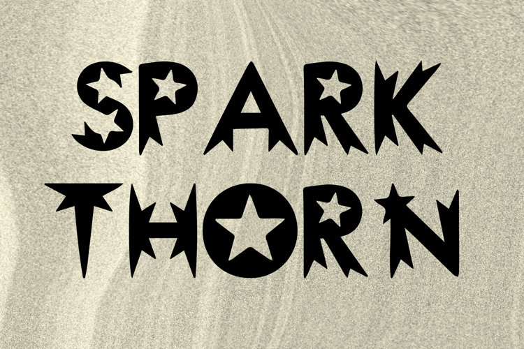 Sparkthorn is a bold decorative display font with a sharp geometric style and striking star-inspired character. Its uppercase letterforms feature strong angular cuts, pointed thorn-like edges, and standout star cutout details that create a dramatic, edgy, and eye-catching look. Designed with uppercase letters A–Z and numbers 0–9, Sparkthorn is perfect for logos, branding, posters, packaging, headlines, party designs, and creative projects that need a powerful and memorable statement.