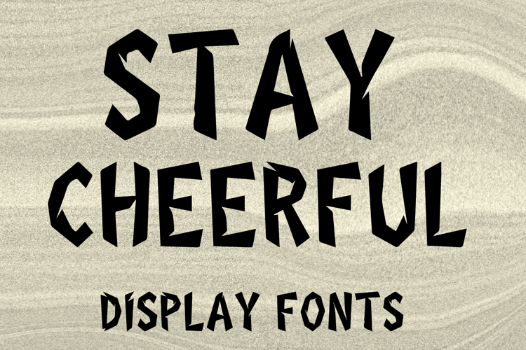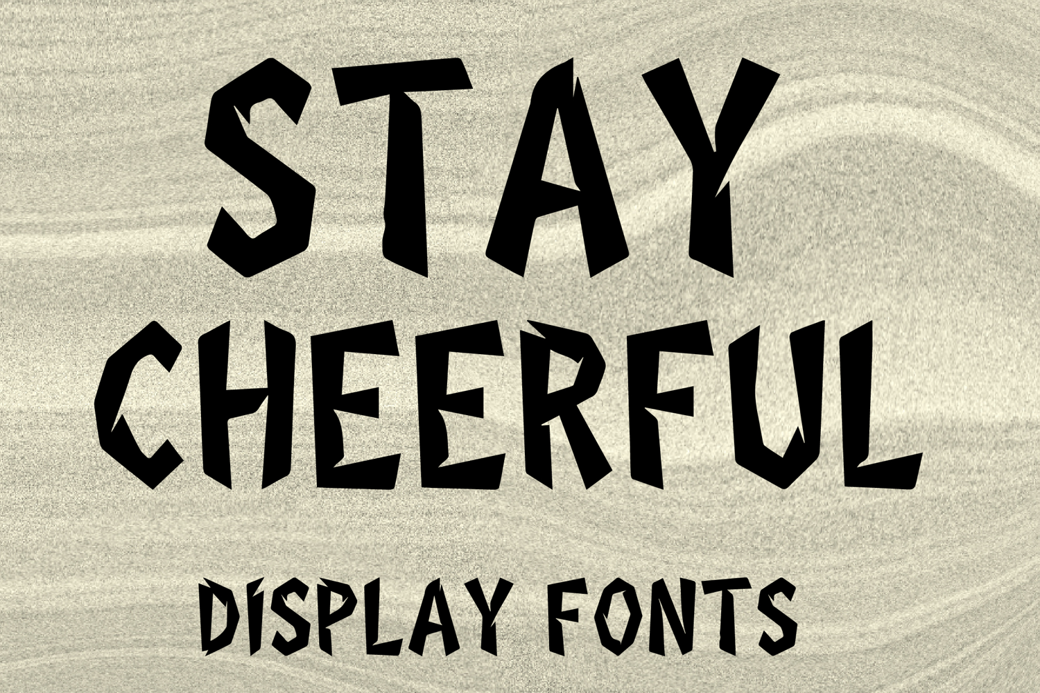 STAY CHEERFUL is a bold decorative display font with a sharp handcrafted style and edgy geometric character. Its uppercase letterforms feature angular cuts, uneven pointed edges, and strong irregular shapes that create a striking, energetic, and eye-catching look. Designed with uppercase letters A–Z and numbers 0–9, STAY CHEERFUL is perfect for branding, posters, packaging, headlines, logos, social media graphics, and creative projects that need a bold and memorable statement.