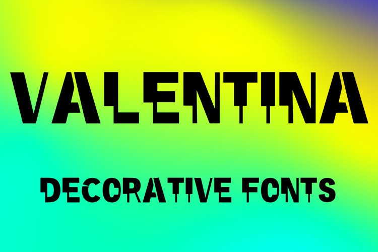 VALENTINA is a bold decorative display font with a clean geometric style and confident modern character. Its uppercase letterforms feature strong blocky shapes, sharp angled cuts, and striking stencil-like details that create a powerful, stylish, and eye-catching look. Designed with uppercase letters A–Z and numbers 0–9, VALENTINA is perfect for branding, posters, packaging, logos, headlines, and social media graphics that need a bold and memorable statement.
