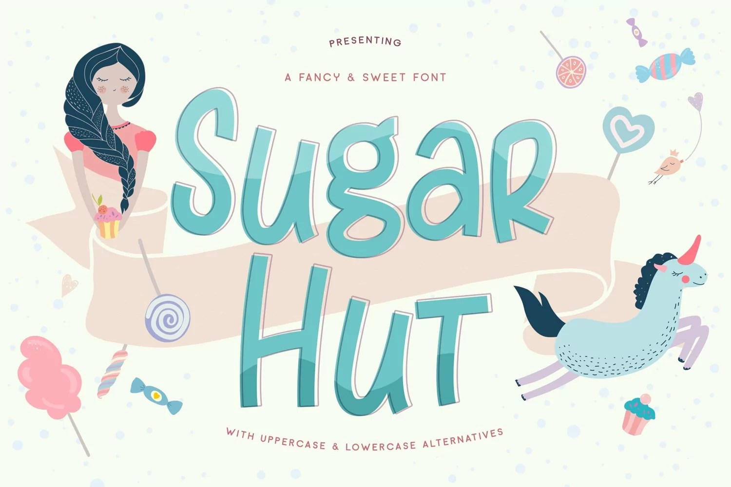 Sugar Hut is a sweet upper and lowercase font with alternates. It's fun and cute and perfect for your craft and design projects