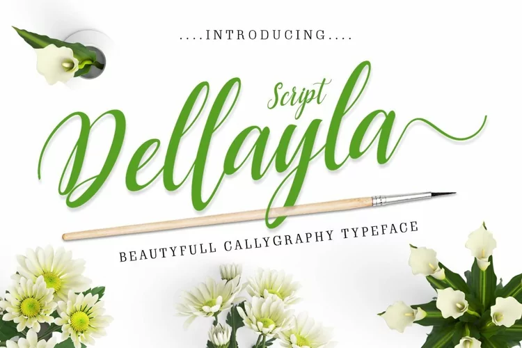 Dellayla Script a new fresh & modern script with a handmade calligraphy style, decorative characters and a dancing baseline! So beautiful on invitation like greeting cards, branding materials, business cards, quotes, posters, and more!!Dellayla Script come with 235+ glyphs. The alternative characters were divided into several Open Type features such as Swash, Stylistic Sets, Stylistic Alternates, Contextual Alternates.