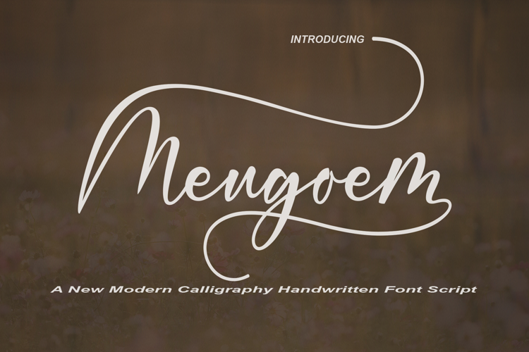 Meugoem Font Script are fonts of regular stylish calligraphy that have a varied base line, fine lines, classic and elegant touches. Can be used for various purposes. Such as title, signature, logo, wedding invitation, t-shirt, letterhead, nameplate, label, news, poster, badge etc.