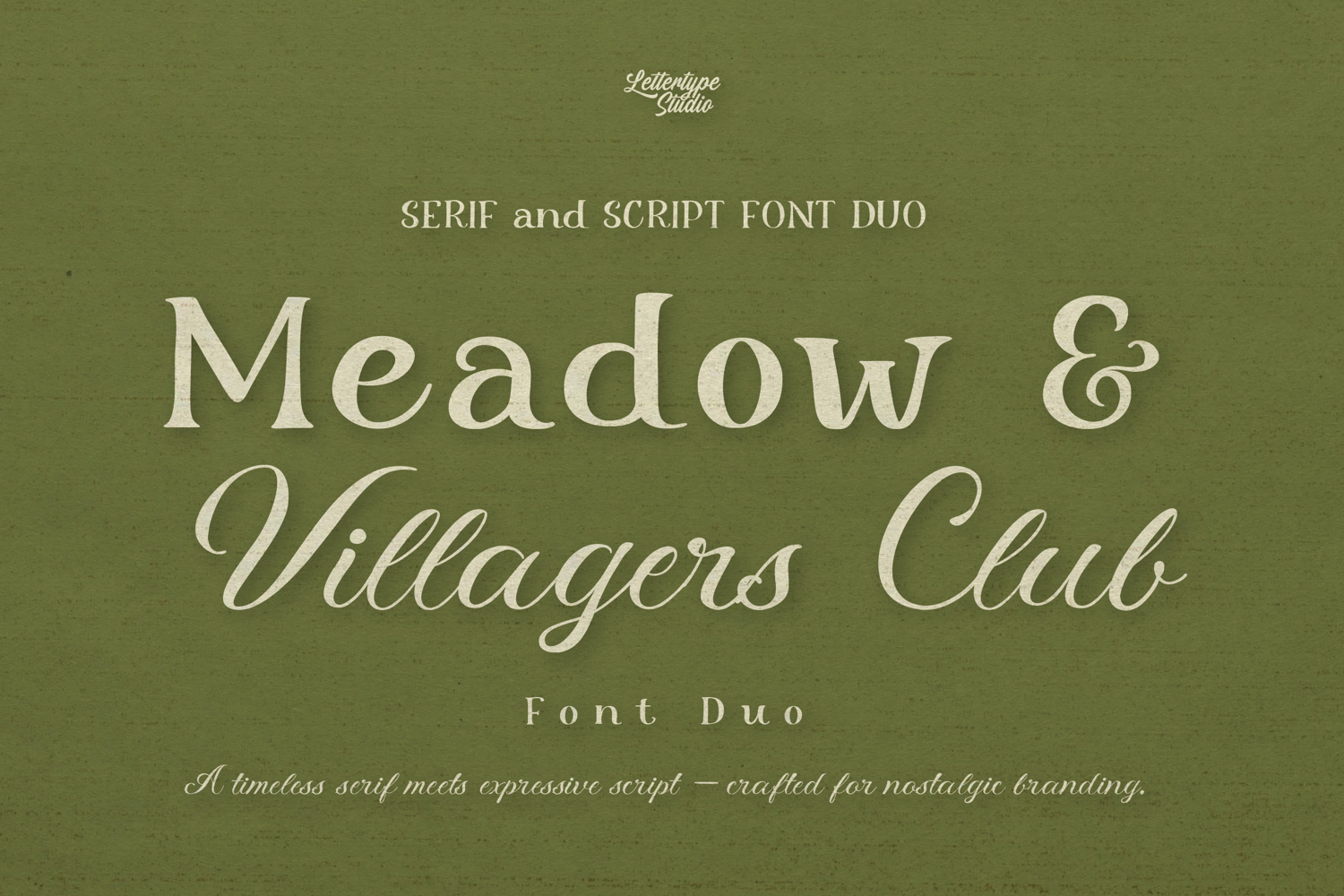 Ideal for designers seeking both sophistication and expressiveness, Meadow & Villager Club offers versatility across a wide range of creative projects. Whether used for branding, packaging, or wedding design, this duo creates a balanced typographic system that feels both classic and alive.