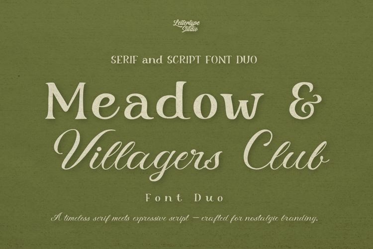 Meadow & Villager Club is a thoughtfully crafted font duo that blends a refined vintage serif with a natural, expressive script. Designed to evoke a sense of nostalgia and warmth, this pairing captures the essence of countryside living, artisanal branding, and timeless editorial design. The serif delivers structure and elegance, while the script adds an expressive, handcrafted touch—creating a perfect visual harmony.