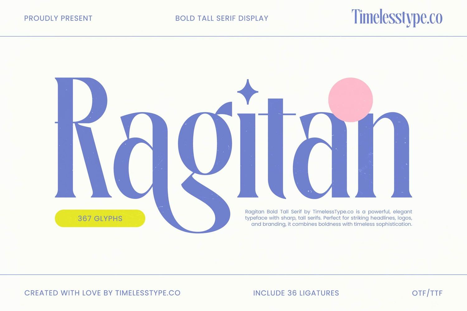 Ragitan - Bold Tall Serif Display is engineered to demand attention with undeniable elegance. This compelling display typeface marries extreme verticality—achieved through its tall, confident serifs—with the sophisticated boldness of its strokes. The result is a highly expressive, high-contrast design that immediately conveys prestige and timeless sophistication, ensuring your headlines are not just read, but felt.