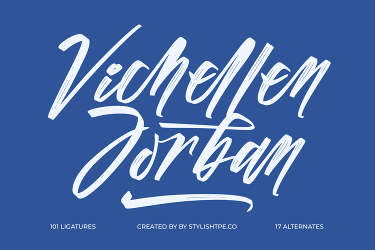 Designed for unparalleled flexibility, Font Vichellen Jordan - Modern Brush Font Script features an impressive array of 101 ligatures and 17 alternates, allowing for truly customized and unique typographic compositions. These rich OpenType features ensure genuine handcrafted authenticity and avoid repetitive letterforms, delivering a truly bespoke feel. With its extensive multilingual support, Font Vichellen Jordan - Modern Brush Font Script adapts seamlessly across global markets, making it incredibly versatile for international projects.
