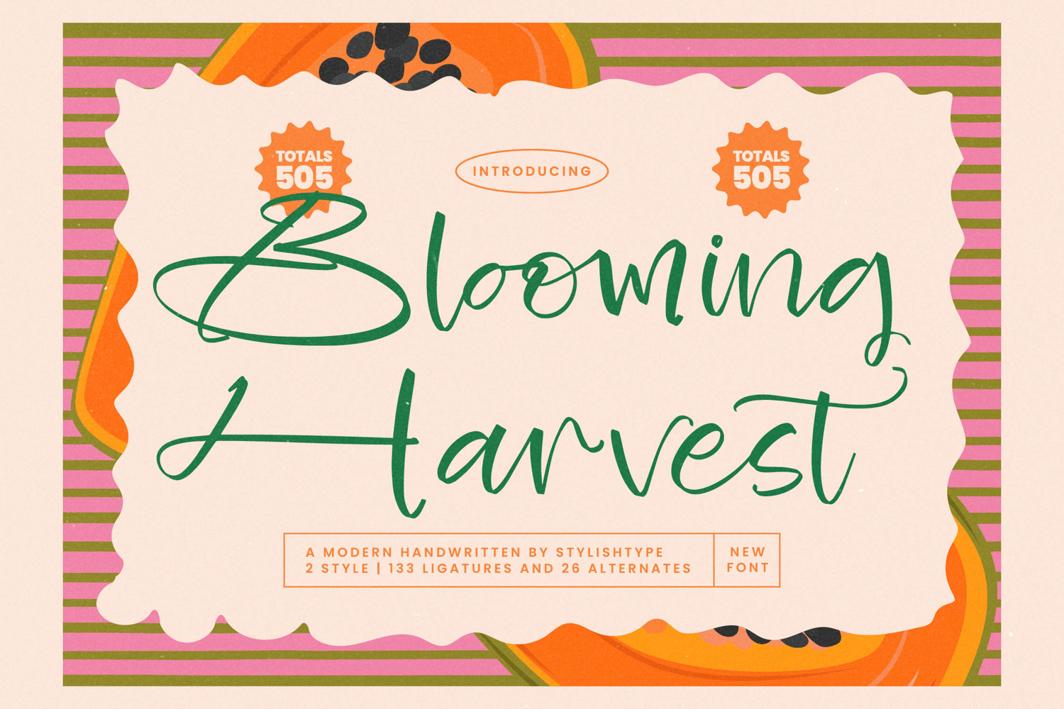 Capture immediate attention with the irresistible, vibrant energy of a truly unique script. Blooming Harvest - Modern Handwritten Font is meticulously crafted to convey warmth, authenticity, and spontaneous charm, standing out boldly in crowded markets. Its expressive, fluid connections and delicate brush strokes provide the organic feel of genuine handwriting, offering the ultimate solution for designs that demand a personalized, yet polished, aesthetic.