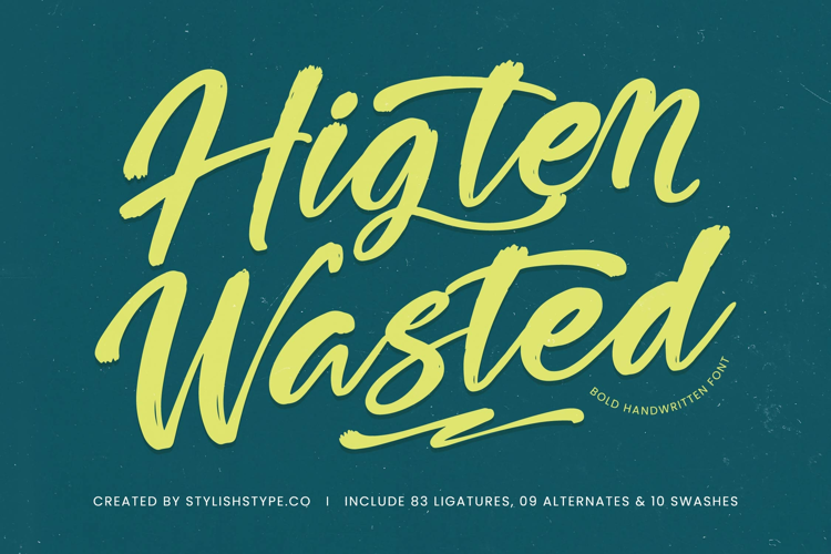 Inject immediate energy into your design portfolio with the expressive authenticity of Higten Wasted - Bold Handwritten Font. This typeface delivers a powerful, custom-made aesthetic, characterized by its thick, flowing brushstrokes and dynamic baseline shifts. It perfectly captures the spontaneous feel of genuine hand-lettering, ensuring your titles and logos possess undeniable visual charisma and stand out instantly against crowded digital spaces.