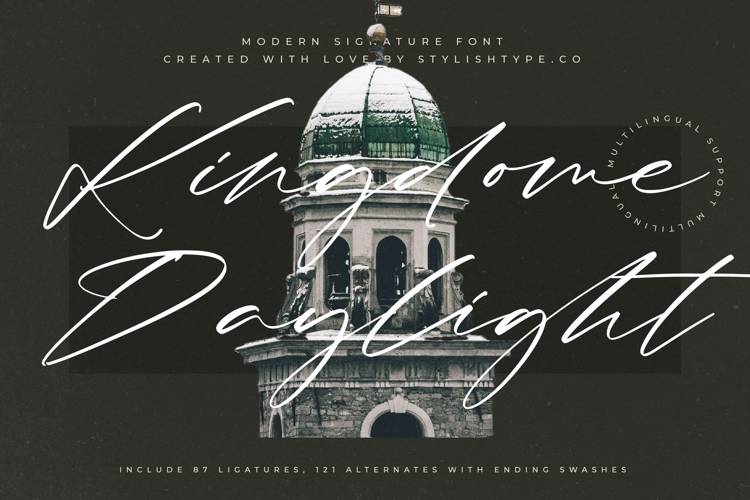 Achieve unparalleled typographical richness through a comprehensive suite of OpenType features. Kingdome Daylight - Modern Signature Font boasts an impressive collection of 87 Ligatures and 121 Alternates, including dramatic ending swashes. These features allow designers to craft truly custom layouts, ensuring every word flows seamlessly while maintaining a unique, professional hand-lettered aesthetic. This deep customization capability makes the font incredibly adaptable and ideal for detailed, artistic lockups.