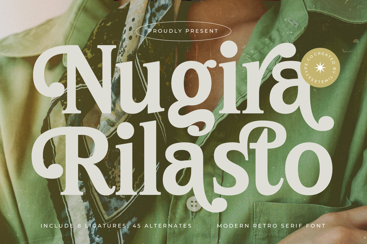 In short, Nugira Rilasto Typeface is a retro serif display font designed to bring classic-modern elegance, decorative charm, and expressive style. Perfect for editorial, branding, packaging, entertainment, advertising, and digital campaigns, this font elevates typography into a timeless, stylish, and character-rich visual element.