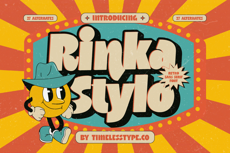 In short, Rinka Stylo Typeface is a retro sans serif display font created to bring joy, nostalgia, and playful style. Perfect for editorial, branding, packaging, entertainment, advertising, and digital campaigns, this font transforms typography into a vibrant, fun, and character-rich visual element that bridges vintage charm with modern appeal.