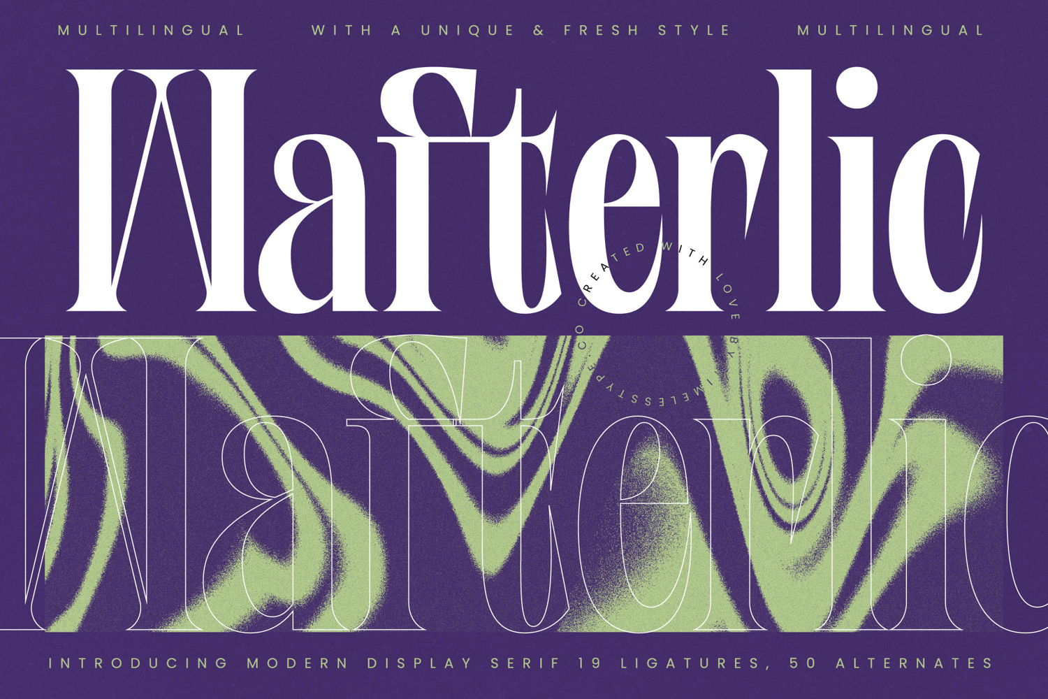 In short, Wafterlic Typeface combines elegance, artistic flexibility, and modern character. Whether used in editorial, branding, packaging, entertainment, or digital projects, it brings a classy, stylish, and iconic presence to any visual communication.