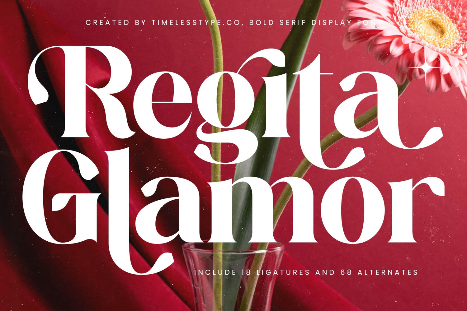 Regita Glamor is a bold serif display font that combines luxury, elegance, and dramatic presence in every curve. Its high-contrast strokes, sharp serifs, and refined terminals make it a striking choice for designers who want their typography to stand out with both power and grace. Featuring 18 ligatures and 68 alternates, this font offers endless stylistic possibilities, allowing text to be transformed into an expressive visual centerpiece. Each alternate provides variation that keeps designs fresh, while the ligatures add fluidity and sophistication.