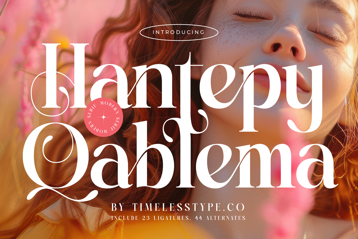 Hantepy Qablema is a modern serif display font that radiates sophistication, beauty, and timeless elegance. With its refined strokes, high-contrast serifs, and graceful curves, this typeface creates a perfect balance between classic charm and contemporary design. Designed with 23 ligatures and 44 alternates, Hantepy Qablema offers flexibility and variety, allowing designers to craft expressive and unique compositions for every project. Its flowing alternates and stylish ligatures transform typography into an artistic element that enhances any layout.