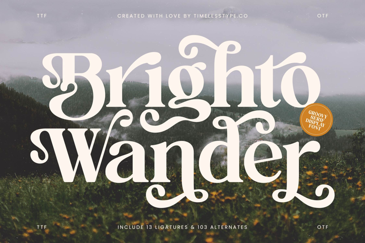 Unleash unparalleled design creativity with a truly distinctive typeface. Font Brighto Wander - Groovy Serif Display Font Serif Display stands as a testament to captivating elegant typography, blending a nostalgic groovy serif display font aesthetic with modern sophistication. Its fluid curves and expressive serifs immediately command attention, making it the ultimate choice for projects demanding a touch of whimsical elegance and unique personality. This display font is meticulously crafted to leave a lasting visual impression. Elevate your visual narratives with remarkable customization. Offering an impressive suite of 13 ligatures and 103 alternates, Font Brighto Wander - Groovy Serif Display Font Serif Display empowers designers with immense flexibility to craft truly unique compositions. It is perfect for luxury branding, high-end packaging design, sophisticated editorial design, fashionable headlines, and captivating posters, where a memorable and artistic flair is essential. This typeface is designed to infuse every project with an authentic, handcrafted feel. Achieve global resonance with a truly adaptable typeface. With its extensive multilingual support, Font Brighto Wander - Groovy Serif Display Font Serif Display adapts seamlessly across global markets, making it incredibly versatile font for international projects. This comprehensive language coverage ensures your brand message maintains its distinct charm and clarity, regardless of geographical boundaries. It’s the definitive solution for designers aiming for expansive reach and universal appeal, embodying a truly global design sensibility. Transform ordinary concepts into extraordinary visual experiences. Font Brighto Wander - Groovy Serif Display Font Serif Display is more than just a font; it’s a powerful tool for developing compelling brand identity and impactful creative design. Its unique character and versatility provide an aesthetic foundation that distinguishes your work. Invest in this exceptional typeface to ensure your designs always stand out, delivering a distinctive, professional statement that truly captivates and connects.
