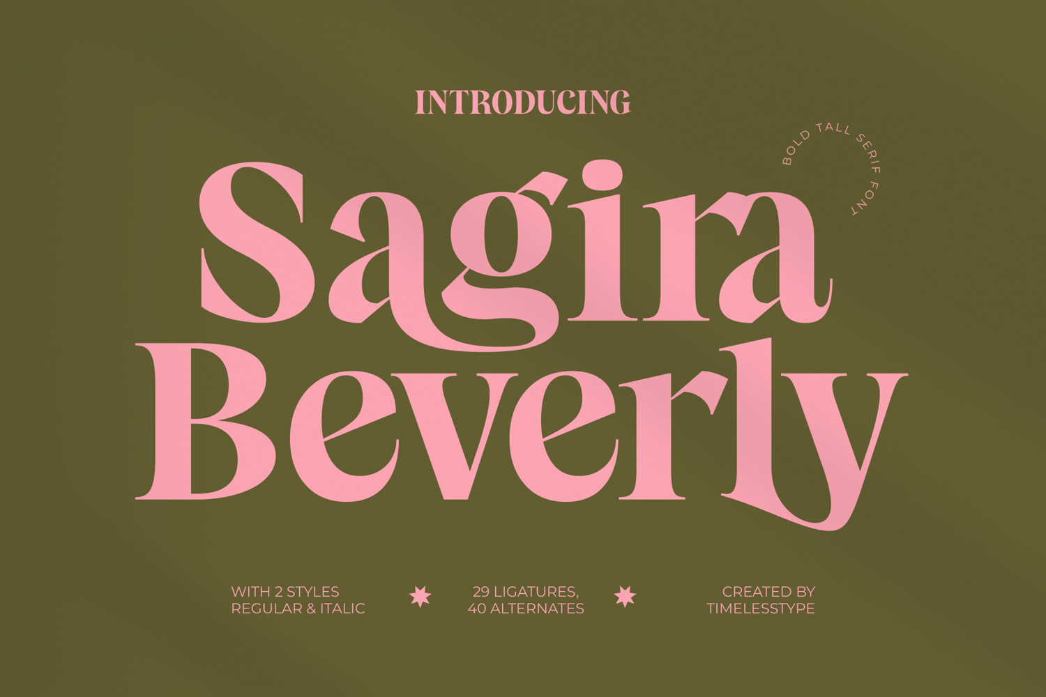 Unleash unparalleled creative flexibility through its robust OpenType features. Sagira Beverly - Bold Tall Serif Font boasts 29 meticulously crafted ligatures and 40 stylistic alternates, enabling designers to construct unique typographic lockups that appear custom-drawn. This extensive character set, coupled with two distinct styles (Regular and Italic), ensures seamless visual flow, making it the definitive choice for sophisticated editorial layouts and distinctive luxury packaging.
