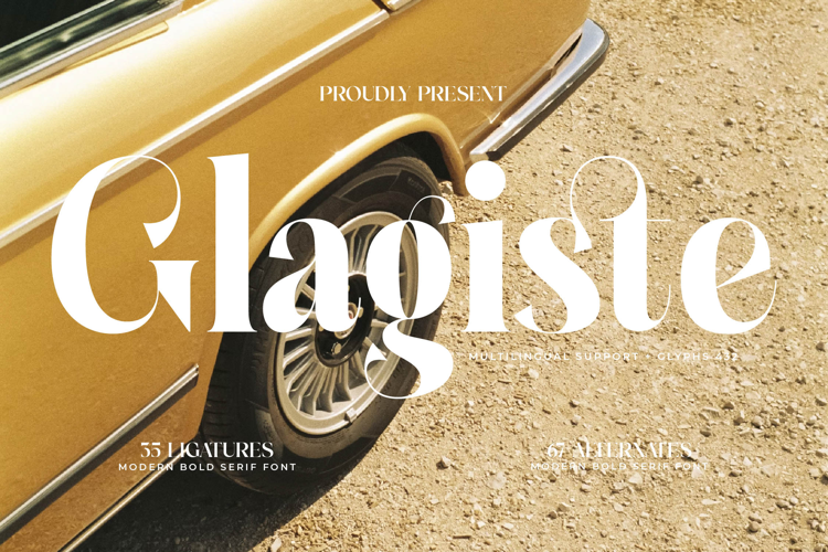 Unlock Unparalleled Creative Freedom. Font Glagiste - Modern Bold Serif Font Serif Display offers an exceptional level of design flexibility, empowering designers to create truly unique and memorable typography. Featuring an impressive collection of 55 ligatures and 67 alternates, this font allows for extensive customization, enabling you to fine-tune your headlines and titles for maximum visual appeal and a bespoke feel.