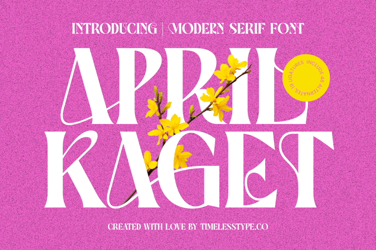 Elevate your design projects with unparalleled elegance. Introducing Font April Kaget - Modern Serif Font Serif Display, a typeface that masterfully blends classical sophistication with contemporary flair. Its striking presence is immediately captivating, designed to command attention and instill a sense of refined luxury in any visual communication. This font is not just text; it's an experience, crafted to make your brand unforgettable.