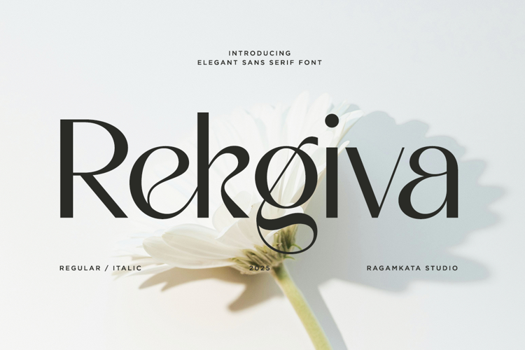 Rekgiva is an elegant serif font crafted to infuse sophistication and style into your creative work. Its flowing curves and crisp serifs achieve a seamless blend of timeless charm and contemporary flair. This makes it an ideal choice for branding, editorial designs, invitations, and packaging that call for a polished, refined aesthetic.