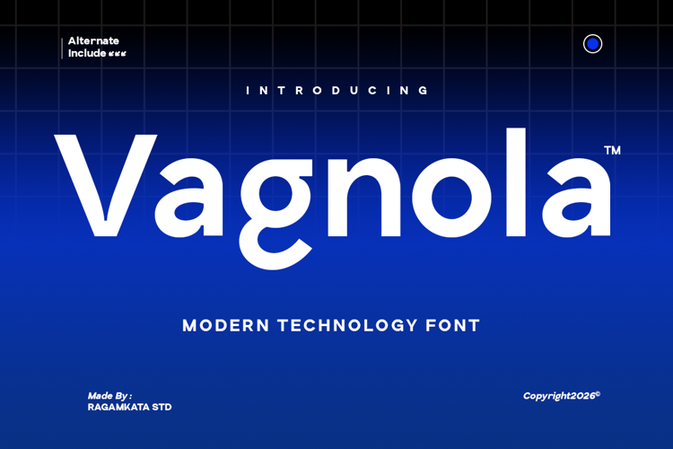 Combining minimalism with futuristic appeal, Vagnola delivers a professional and high-impact typographic solution for modern creators. Whether used for branding, editorial layouts, digital platforms, or motion graphics, this font helps your projects stand out with a bold technological presence and premium modern style.