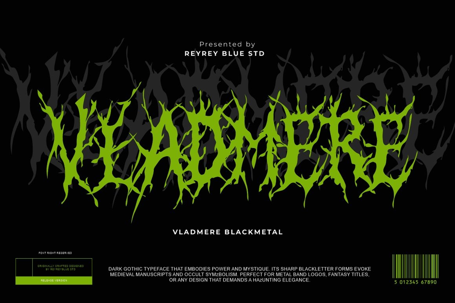Dare to embrace the darkness with Vladmere Blackmetal — a font forged from shadow, chaos, and ancient power.