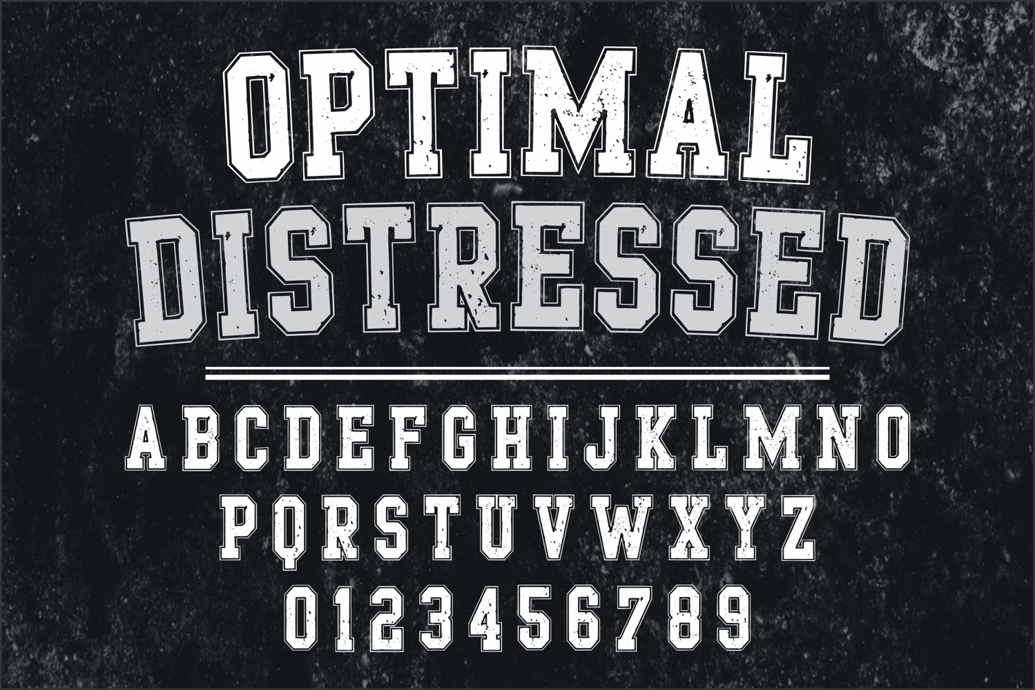 Optimal Distressed is an authentic grunge distressed classic display font, inspired by college typography. This bold and dynamic font captures the energy and excitement of sports. It features a strong and commanding look, with thick lines and sharp edges that convey power and athleticism.