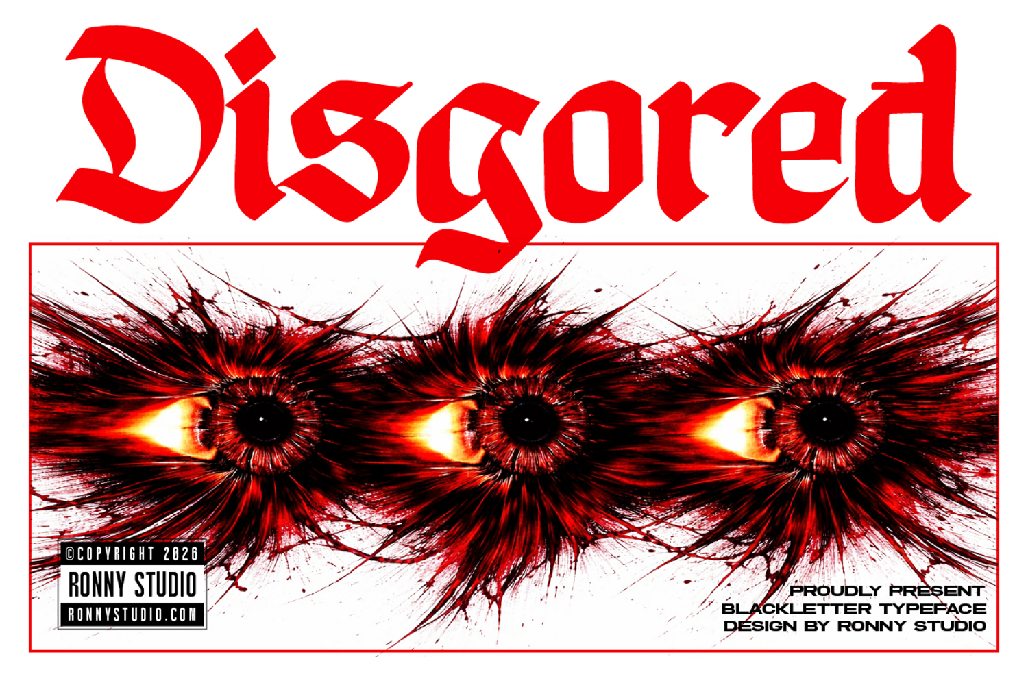 DISGORED is a hardcore blackletter display font built for bold, aggressive, and dark typography. With sharp gothic letterforms and a strong underground attitude, this typeface is perfect for designers who want a raw, powerful look inspired by metal culture, punk visuals, streetwear branding, and extreme poster art.