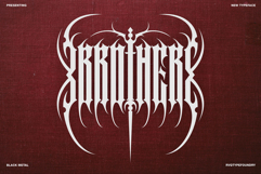 Brother Black Metal is the new font black metal from Rvq typefoundry ,was created as a dual-purpose font To create the beautiful combination, just mix your words with the alternative glyphs and punctuation (Brackerts and parentheses). Perfect for : for Band, Music, clothing, Branding, Logos, Greeting Cards, Stationery Design, Invitations, T-shirts, Apparel, Packaging designs, Posters, Typographic Design, and so much more..