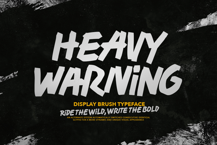 Heavy Warning is a bold and strong handwritten brush font. This font have different shape of uppercase and lowercase that you can use randomly to make it more naturally handwritten looks. And if you activate contextual alternates, it will change automatically between the uppercase and lowercase. You can use this font for any purposes such as quotes, branding, poster, or any project that need to looks strong and bold. Heavy Warning also support multi language!