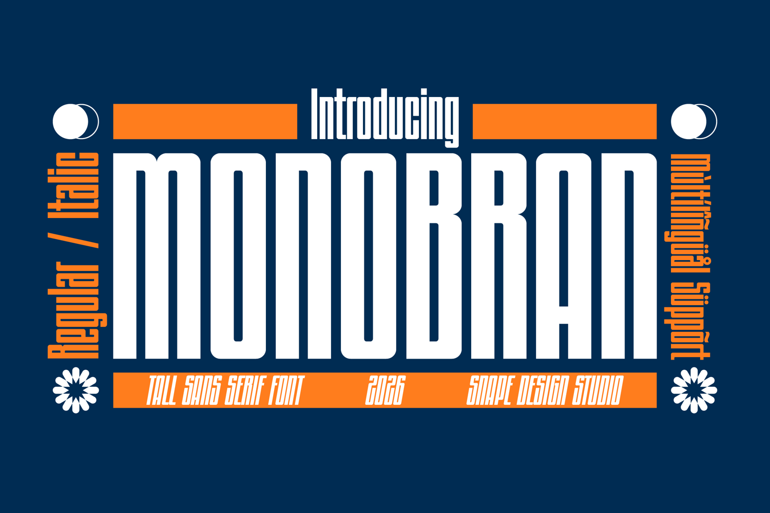 Monobran is a bold and modern tall sans serif display font designed to make a strong visual impact. With its condensed proportions, clean geometry, and confident letterforms, Monobran is built to stand out in headlines, posters, branding, and editorial layouts.