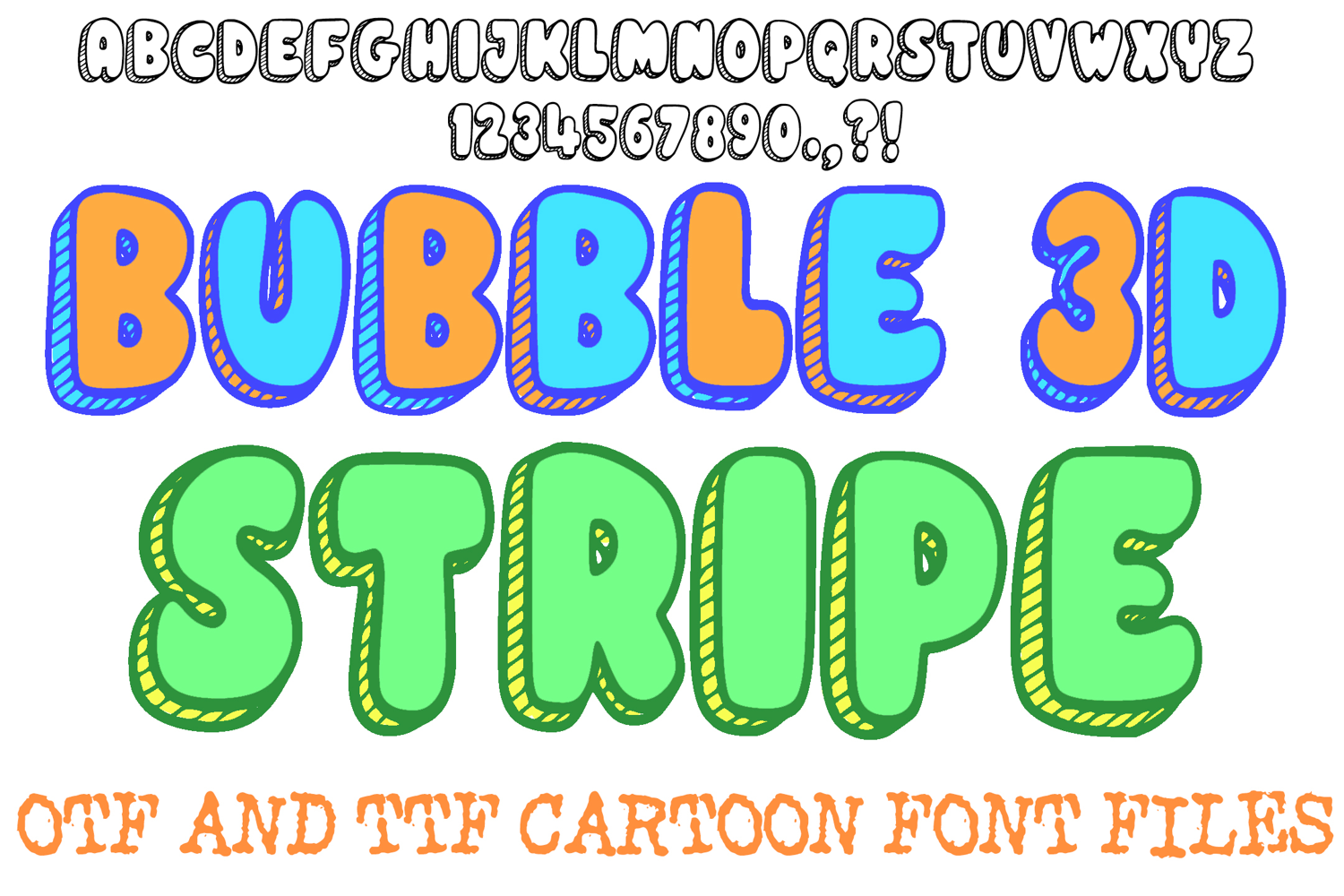Bubble 3D stripe Cartoon Alphabet Lettering ABC Text Font Handwriting OTF by Squeeb Creative