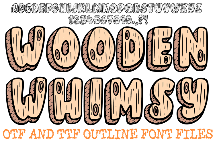 Wooden Whimsy Doodle Font Lettering Wood Texture Log ABC OTF