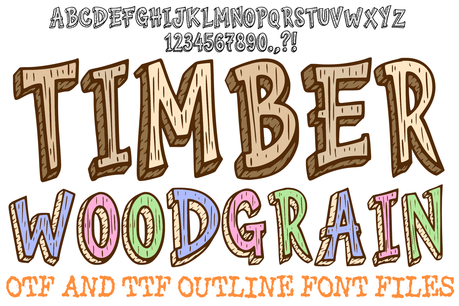 Timber Woodgrain Doodle Font Lettering Wood Log ABC OTF