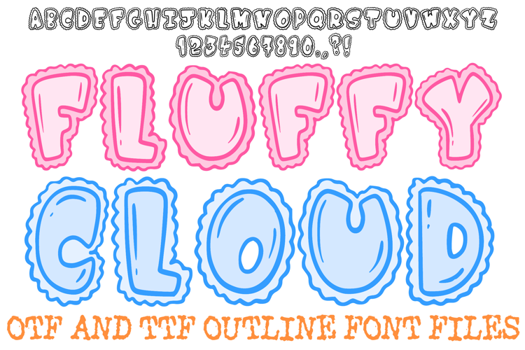 Fluffy Cloud Font Doodle Lettering Bubble Cartoon ABC OTF