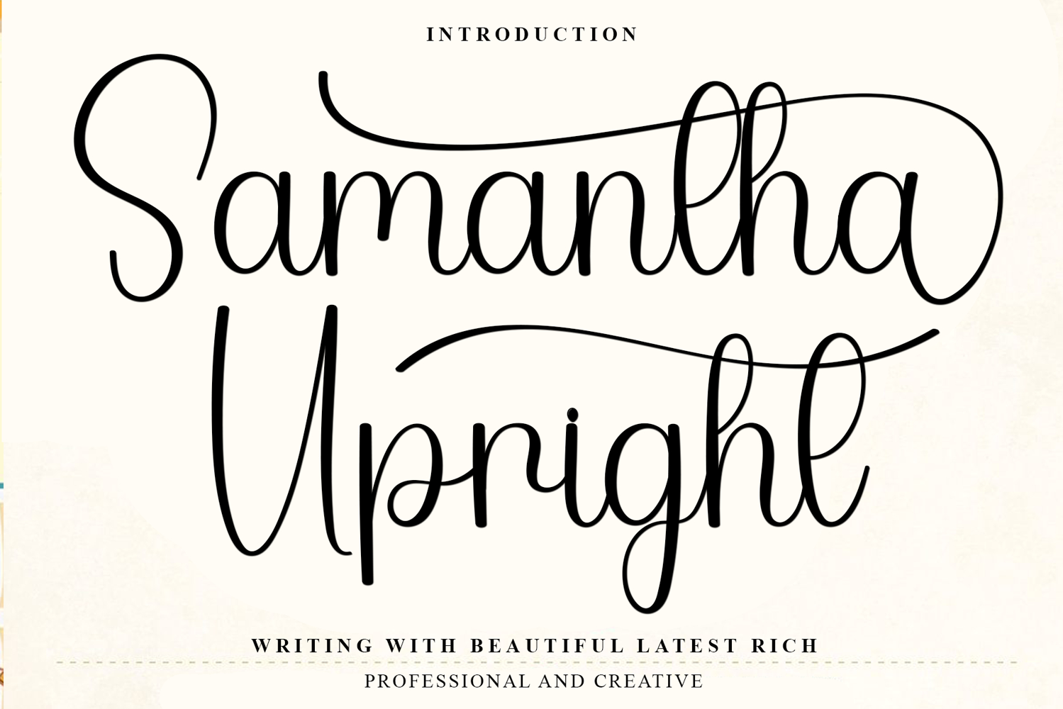 Samantha Upright is a festive and merry typeface that captures the spirit of the holiday season. With its decorative elements and whimsical flair, it adds a touch of enchantment to your designs. Perfect for greeting cards, gift tags, and holiday-themed projects, this font brings a cheerful and nostalgic ambiance to your words. Let your typography shine with the magic of Beautiful Font!