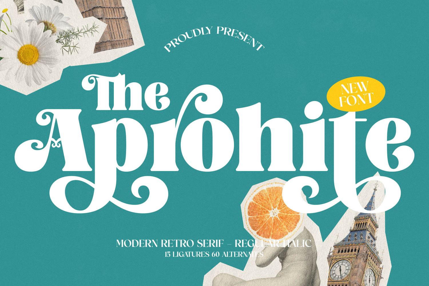 Experience unparalleled design flexibility with the meticulous craftsmanship of Font Aprohite - Modern Retro Serif Font Groovy. Crafted for impact and versatility, this exquisite serif font features a generous suite of alternates and ligatures, empowering designers to infuse each character with unique personality and fluid connection. From intricate logotypes to expansive editorial layouts, its inherent elegance ensures readability while offering dynamic creative possibilities for a polished, memorable touch.