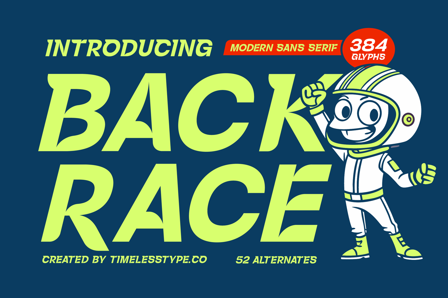 Back Race Italic - Modern Sans Serif Font is perfectly engineered for maximum impact across a multitude of creative ventures. It excels in sports branding, automotive design, energetic event promotions, and youth-oriented marketing. This font is also an outstanding selection for packaging, dynamic headlines, logo design, and any application where a powerful, contemporary, and playful visual statement is paramount.