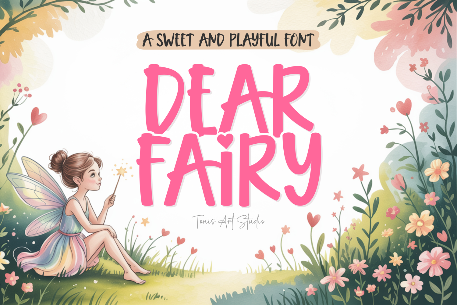 Dear Fairy Font is a sweet and playful handwritten font designed to bring a soft touch of magic to your designs. With rounded, friendly letterforms and charming details like tiny hearts, this font feels warm, whimsical, and full of fairy-tale personality.