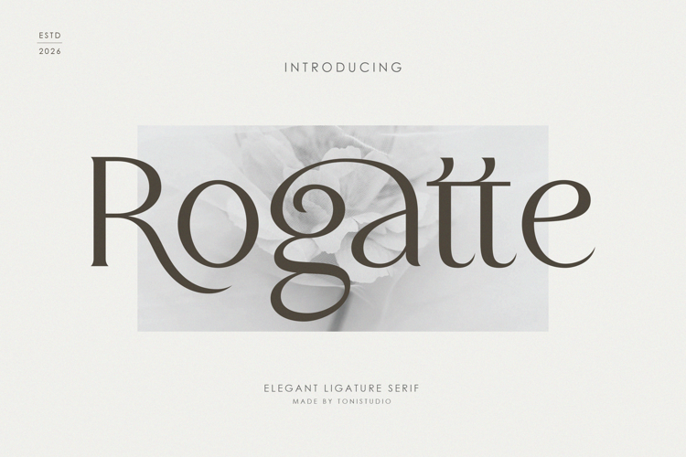 Rogatte is an elegant ligature serif typeface crafted for high-end branding, editorial design, and luxury visual identities. Featuring refined contrast, graceful curves, and distinctive uppercase alternates, Rogatte brings a sophisticated and artistic touch to every composition.