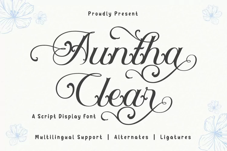 However, Auntha Clear is more than just a visual beauty. Features like ligature and alternate give your creativity a new dimension. You can freely explore the variety of characters that make your design even more unique.